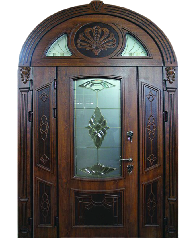 Входная арочная дверь МДФ с ковкой/стеклом 3144